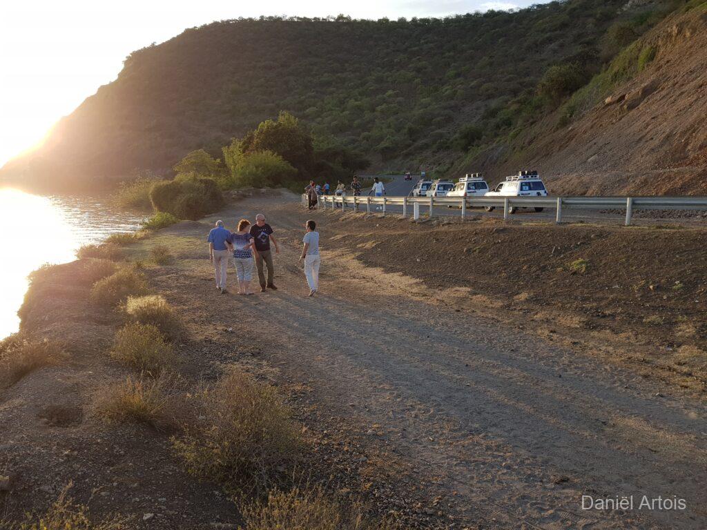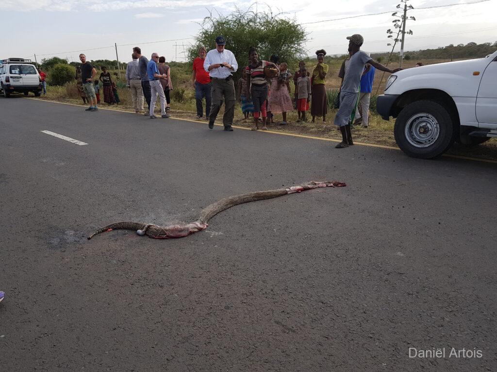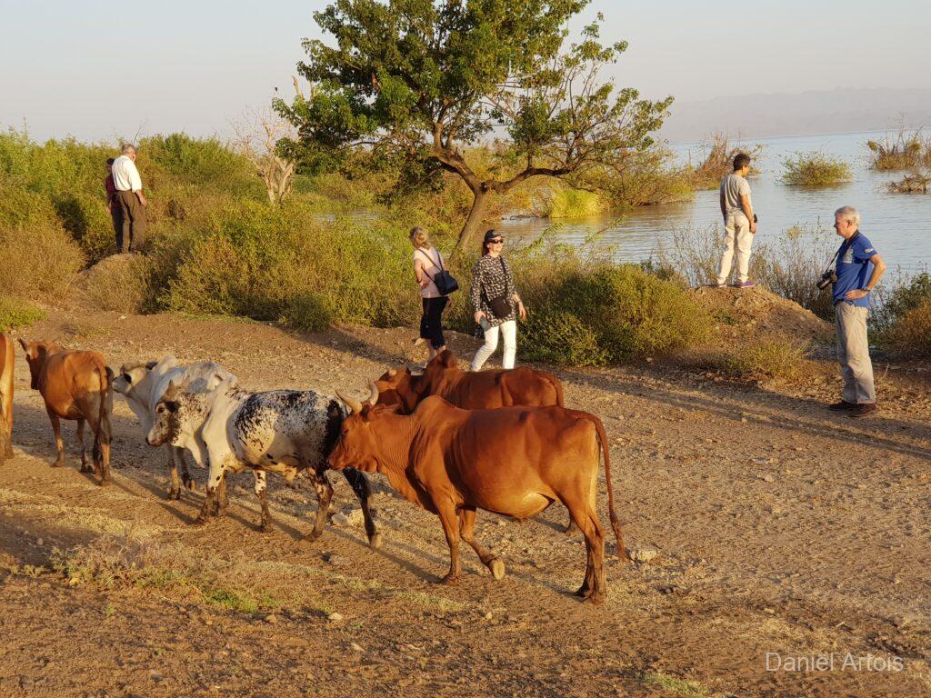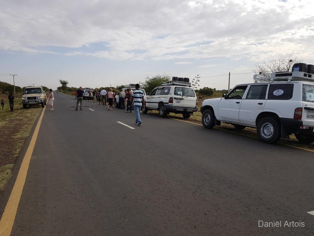 Vandaag een lange reisdag, waarbij de groep werd verdeeld over 5 Land Cruisers (i.v.m. de onverharde wegen de komende dagen). Een mooi moment om nog even terug te blikken op de indrukken van onze eerste dag in Addis Abeba. Het is een stad met 2 gezichten. Als je vanaf het vliegveld de stad binnenrijdt wordt je omgeven door veel hoogbouw en grote bouwprojecten (van Chinese ontwikkelings- maatschappijen). Dit staat in schril contrast met de middag, als je de markt bezoekt; dat heeft namelijk alles van een verblijf in een ontwikkelingsland. Verder behoorde bijvoorbeeld ons Hotel Ghion tot de goede categorie in Ethiopië. Het is mooi gelegen, maar soms functioneren bijv. niet alle lichtpunten op de kamer en heb je alleen koud water. Als je je daar van te voren een beetje op instelt valt het allemaal wel mee. Dan nu de reis van vandaag naar Arba Minch een totale afstand van 505 km. Onderweg ga je door een licht glooiend landschap en door verschillende kleine plaatsjes. De weg was goed met af en toe wat gaten, en regelmatig koeien, ezels of geiten op de weg. In de morgen hebben we een archeologische site bezocht Melka Kunture, daarna nog een koffiestop en een goed lunchadres.