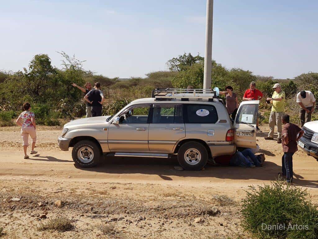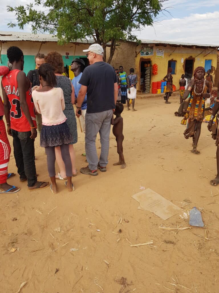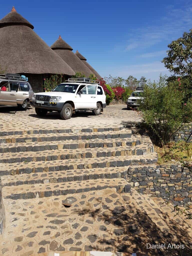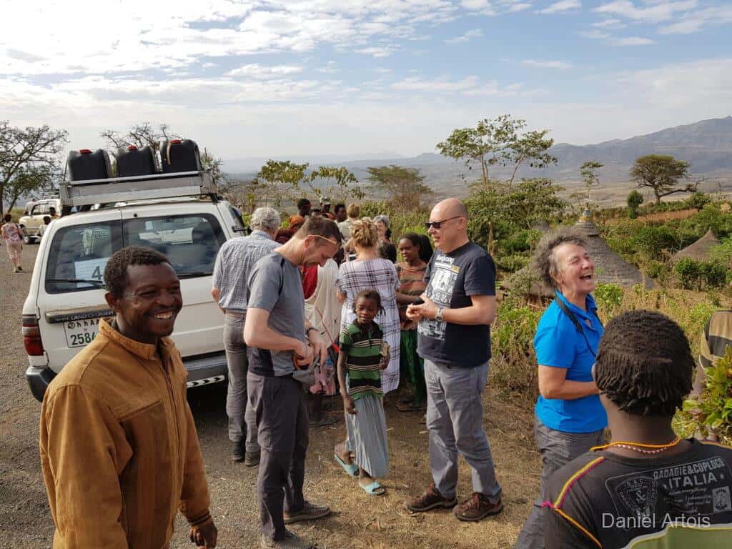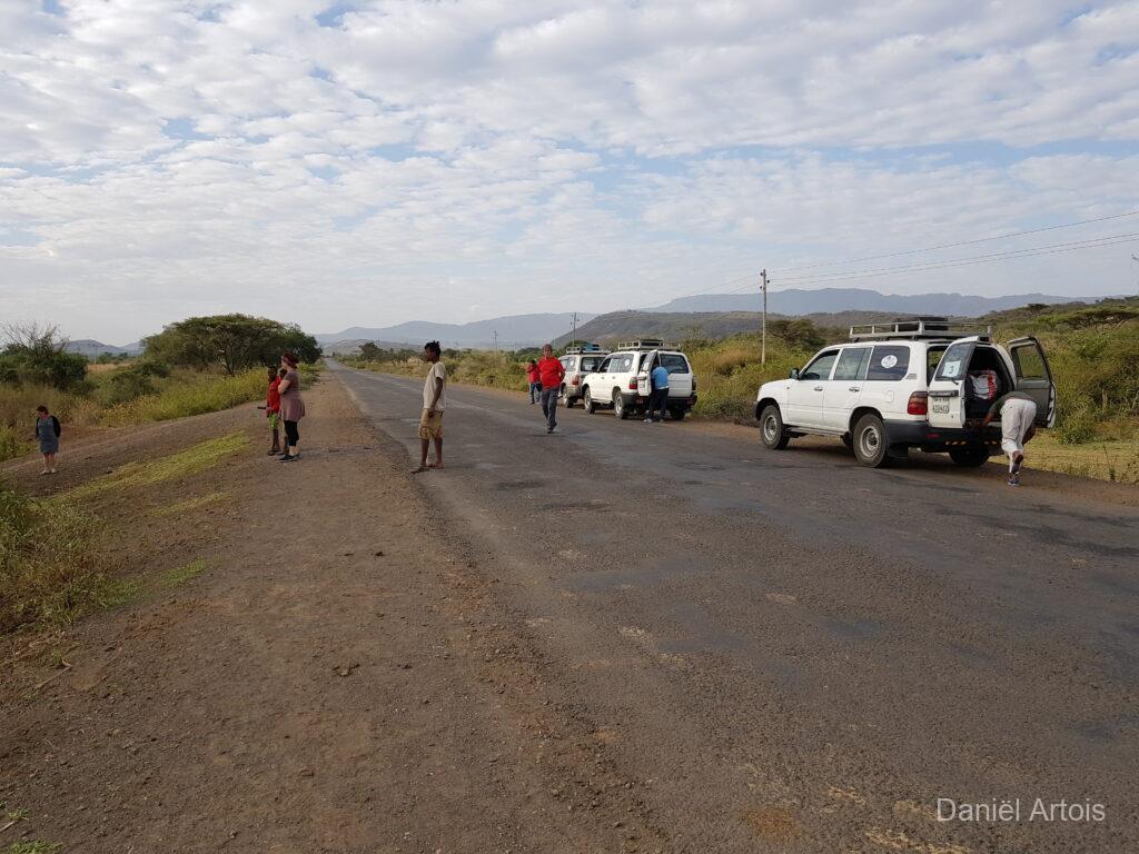 Vervolgens door naar Konso voor een koffiestop bij het hotel waar we later in de week zullen overnachten. Toen verder naar Key afar voor de lunch (in de buitenlucht). Na de lunch verder over zandwegen (wel de hele dag mooie landschappen) naar Turmi. Onderweg moest nog even een lekke band van één van de Land Cruisers verholpen worden.