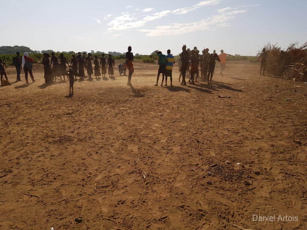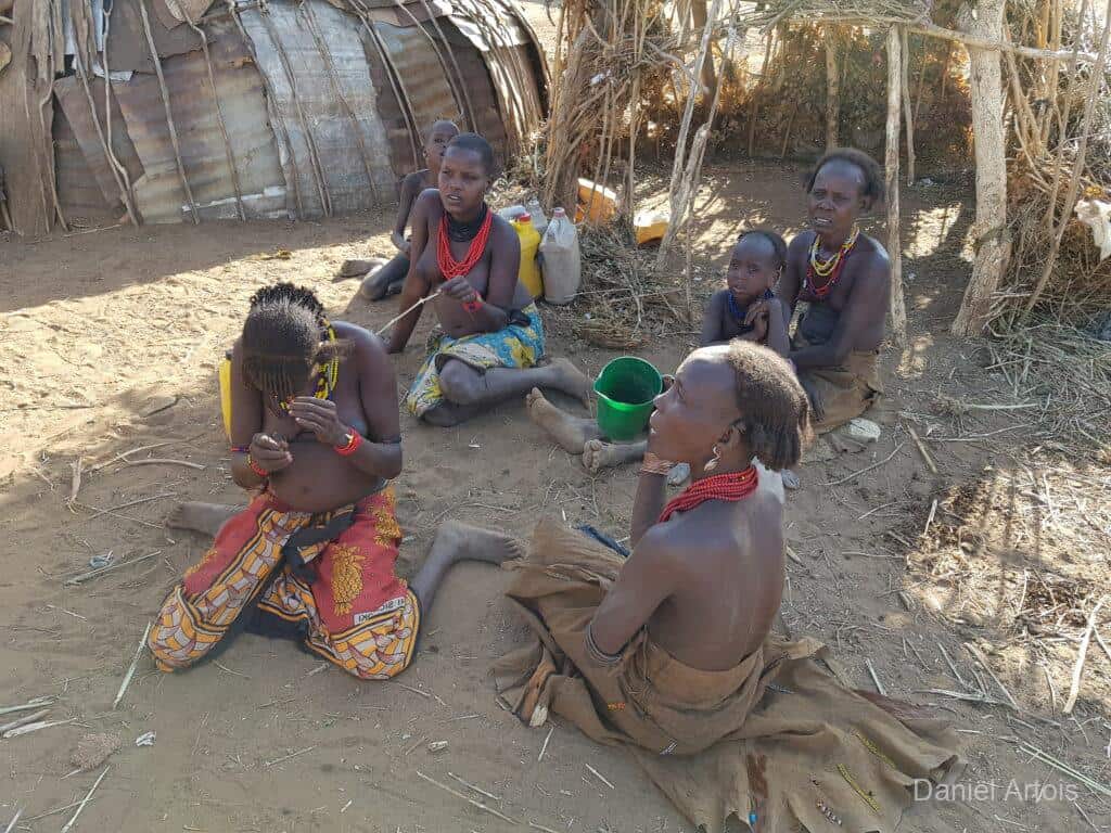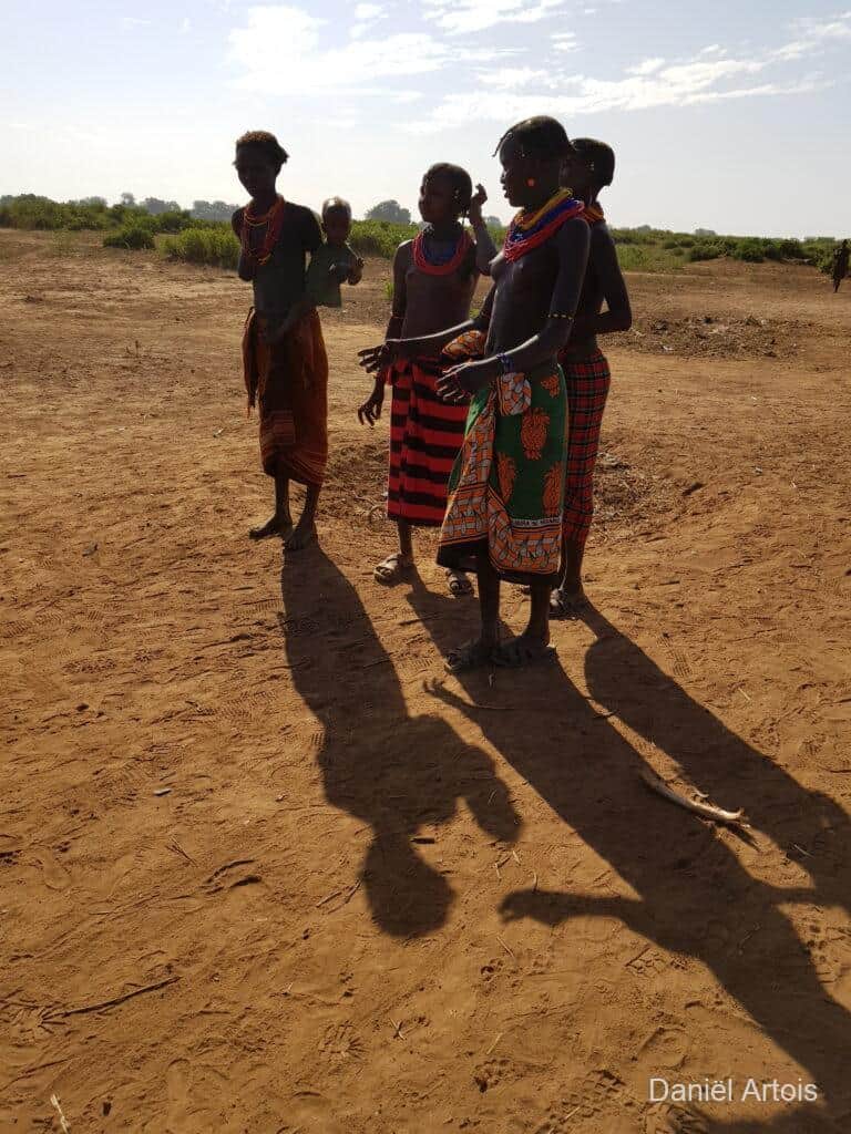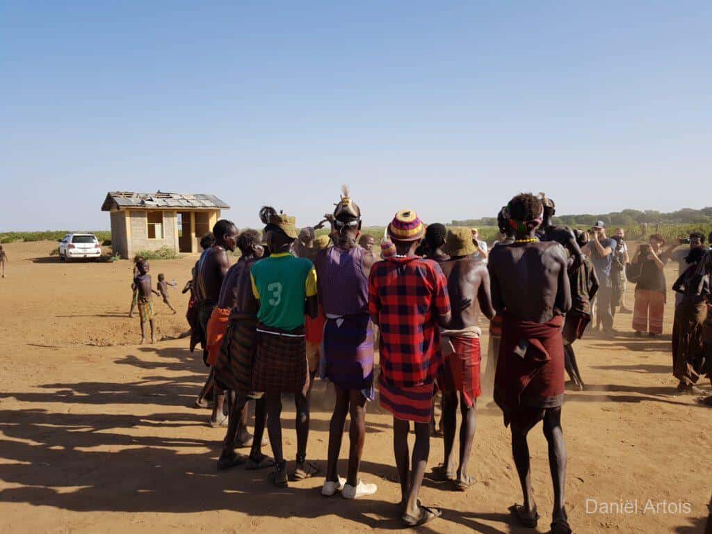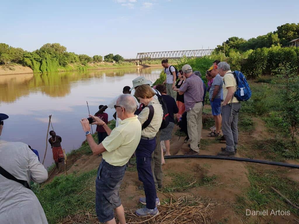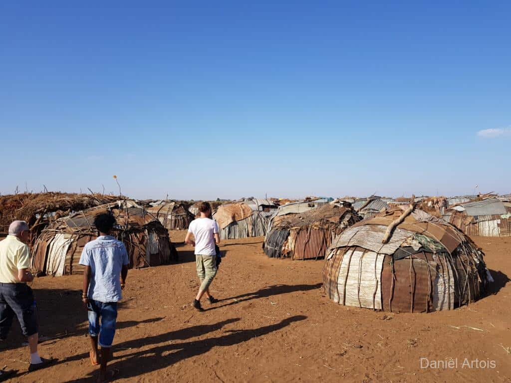 Rond acht uur kwamen we bij een grenscontrole omdat je hier op korte afstand van de Kenyaanse grens bent. Na de controle met bootjes (uitgeholde boomstammen) de rivier over naar het leefgebied van de Dassanech stam.