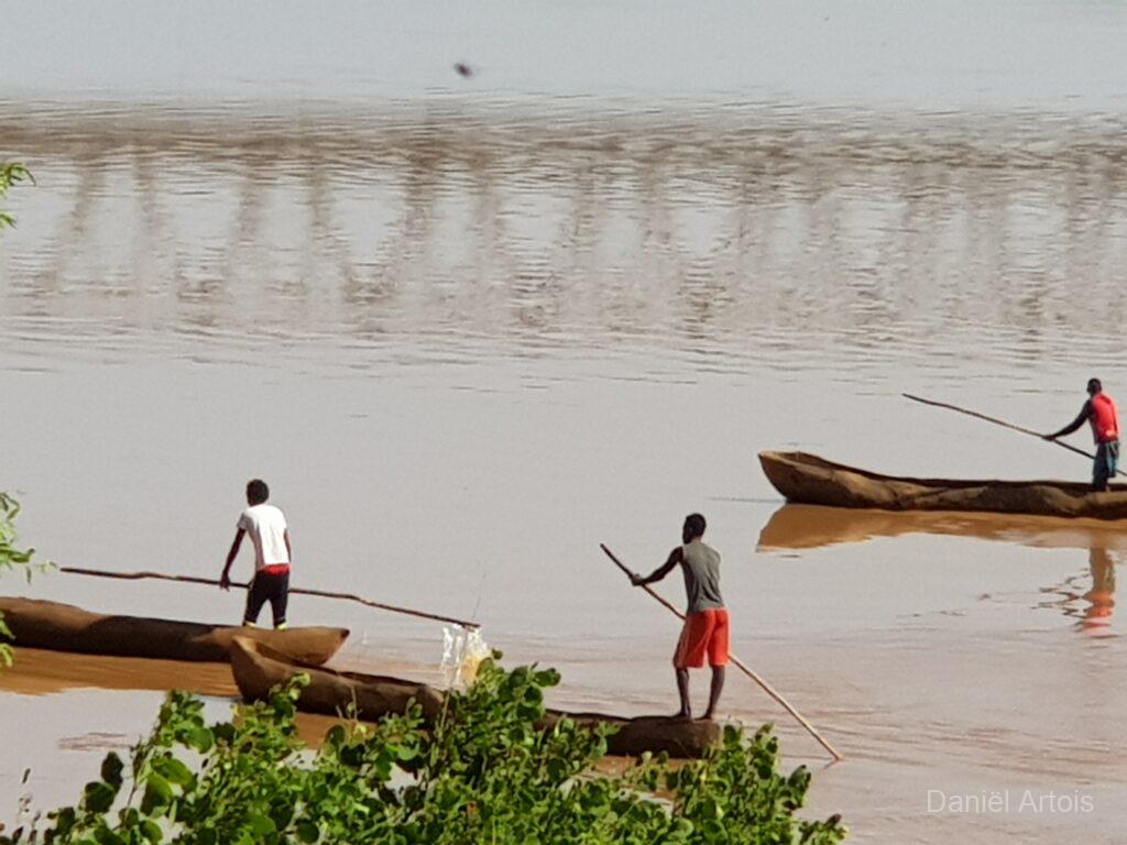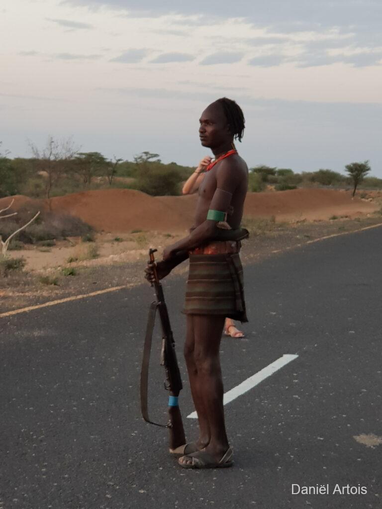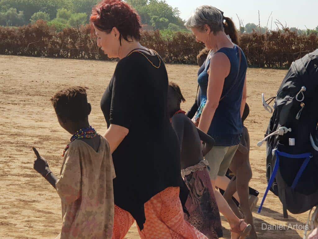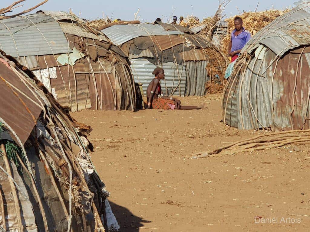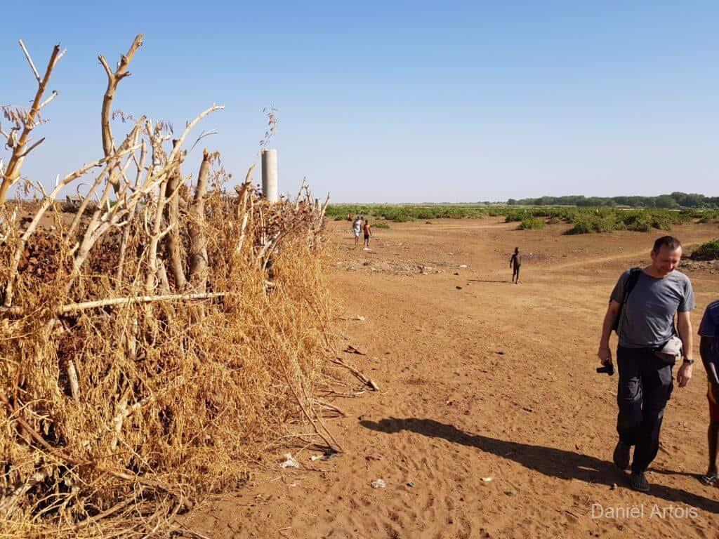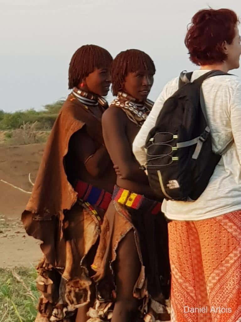 Rond acht uur kwamen we bij een grenscontrole omdat je hier op korte afstand van de Kenyaanse grens bent. Na de controle met bootjes (uitgeholde boomstammen) de rivier over naar het leefgebied van de Dassanech stam.