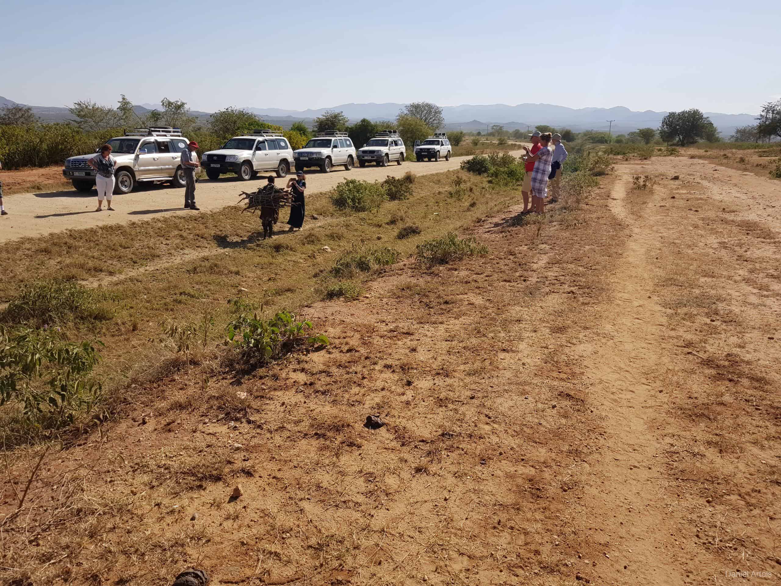 Om half acht ontbeten, half negen vertrek richting Jinka. Onderweg eerst een fotostop bij kamelen, ook nog een stukje gewandeld omdat er weer een lekke band vervangen moest worden van één van de Land Cruisers.