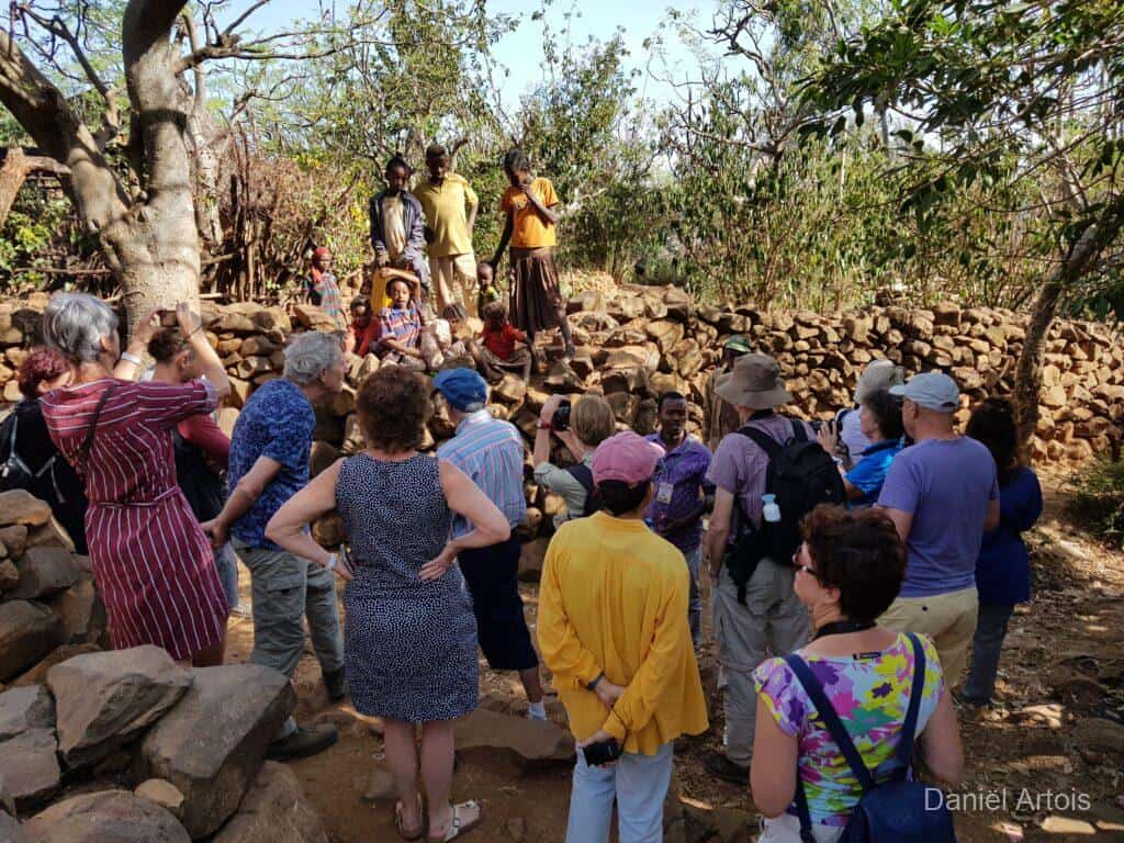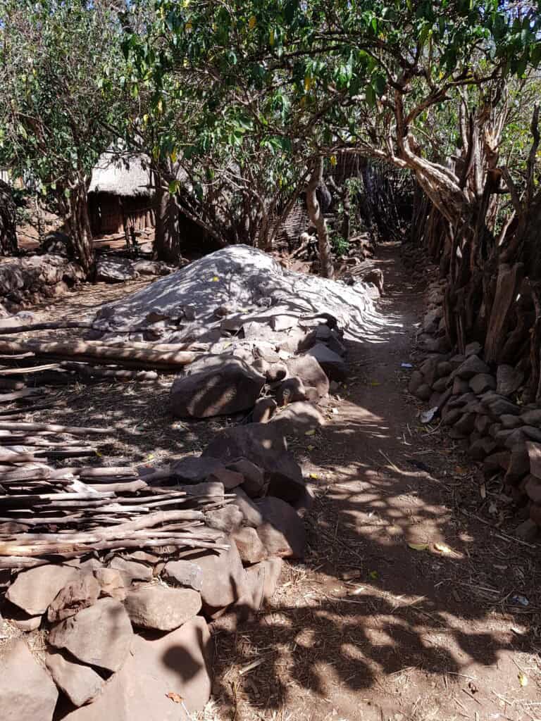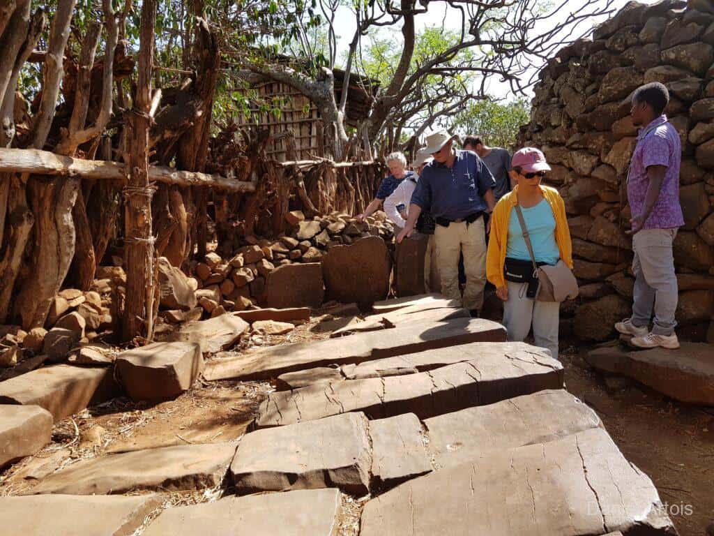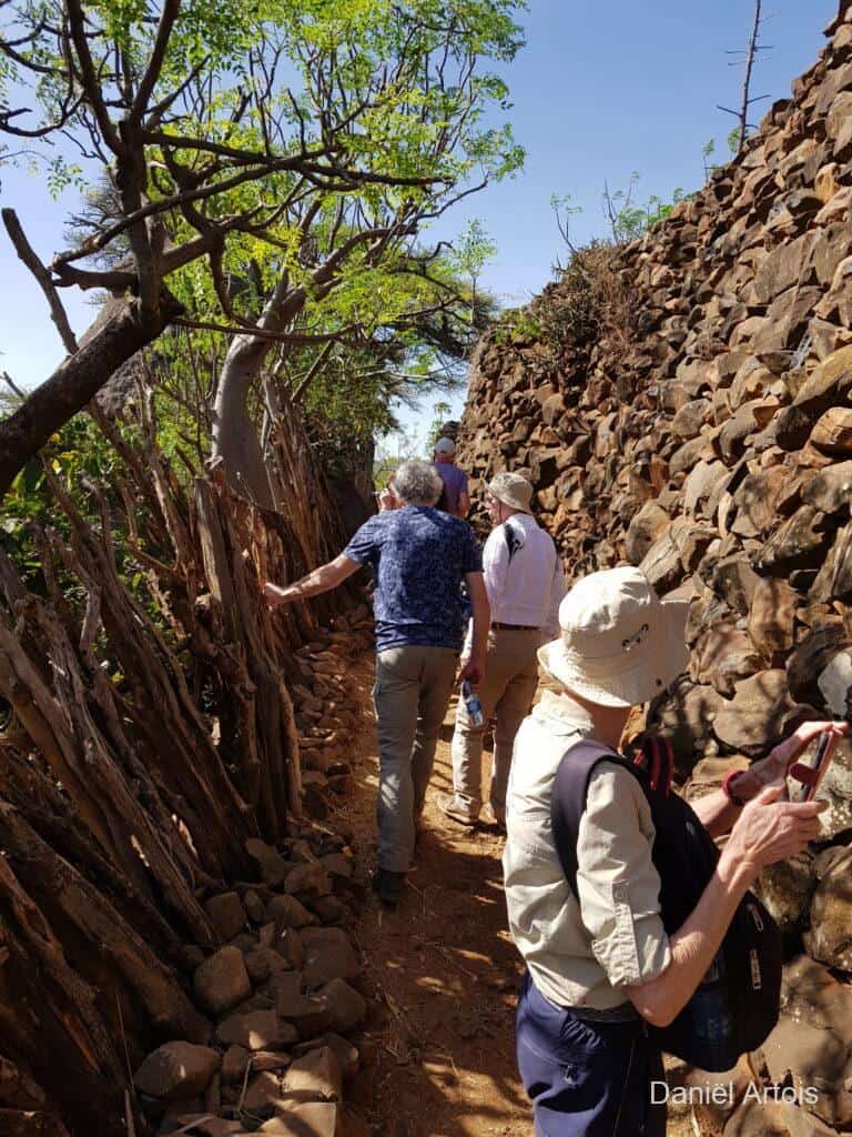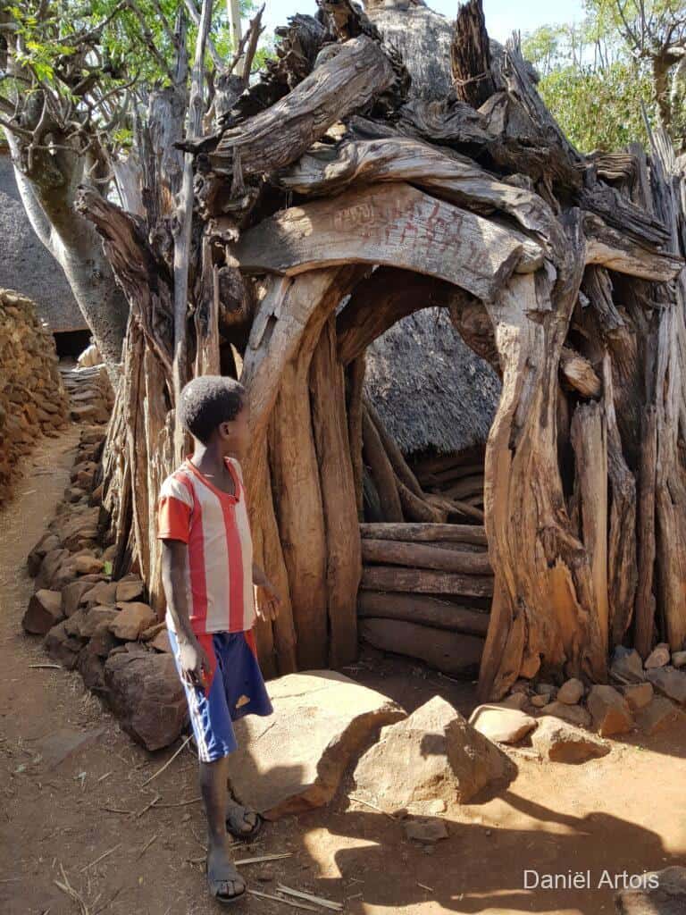 Om zeven uur ontbijt, acht uur vertrek. Eerst even in Konso de lokale gids opgehaald, daarna een half uur rijden naar de Gamole vestiging van een Konso stam. Deze nederzettingen hebben een zeer rijke historie met o.a. verdedigingsmuren, smalle wegen, dorpsdeelraad- huizen en -pleinen en speciaal ingerichte woonerven. Vandaar dat ze ook op de Werelderfgoed lijst van Unesco staan. Heel interessant om te zien en om alle verhalen hierover te horen.