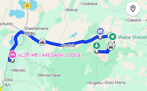 Om zeven uur ontbijt, acht uur vertrokken we. Vandaag een lange reisdag van Yirga Alem naar Goba in het Balegebergte. Eerst reden we door Awassa (de 3e stad van Ethiopië) daarna kwamen we eerst door een mooi afwisselend heuvellandschap en ook door een deel van Bale Mountains National Park waar we o.a. herten en wilde zwijnen zagen. Toen langzaam maar zeker steeds hoger de bergen in via een mooie route tot aan ons hotel Wabi Shebelle (tot nu toe het minste hotel van de reis) in Goba, gelegen op ca. 2600 m. We kwamen hier om half drie aan, zodat we al met al zes en half uur onderweg waren. Snel geluncht, want om half vier vertrokken we voor een wandeling over het Sanetti Plateau (3978m). Dit schijnt de hoogst gelegen hoogvlakte van Afrika te zijn en we hebben hier o.a. de Ethiopische wolf gezien. Om half zeven weer terug bij het hotel, waar we ook s’avonds hebben gegeten.