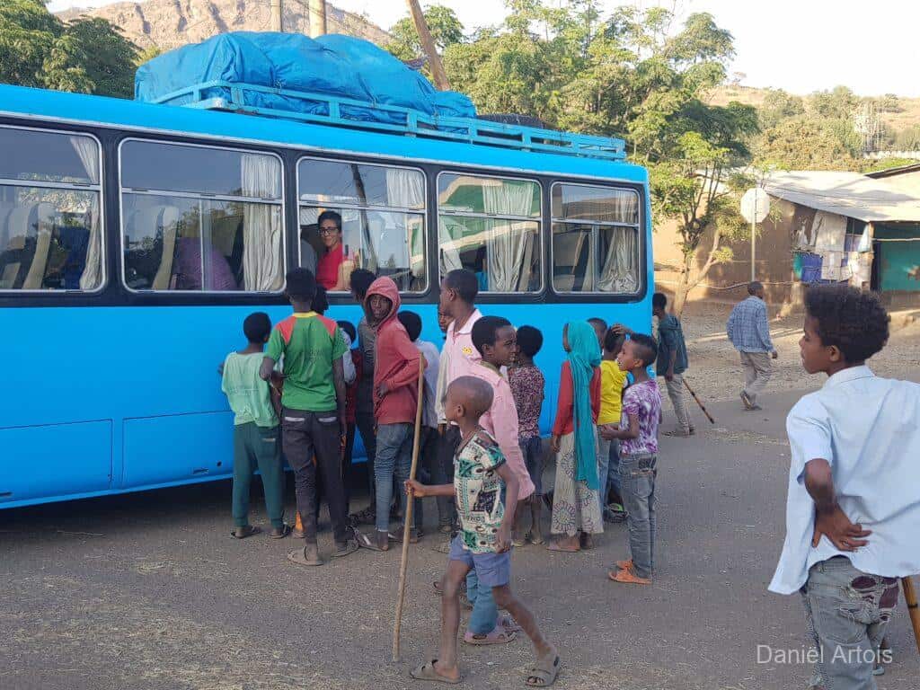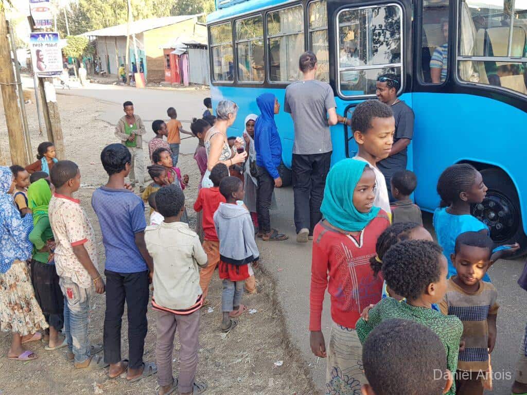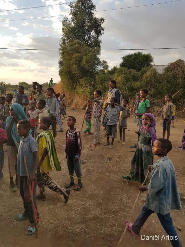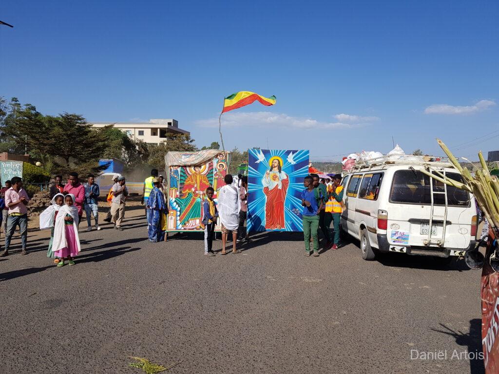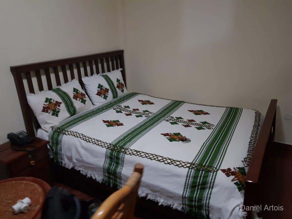 Na de bezoeken nog koffie gedronken en daarna weer met de boot terug naar ons hotel voor de lunch. Om kwart over twee op weg naar Gondor. Al vrij snel kwamen we door een plaatsje waar een ceremonie plaatsvond ter voorbereiding op het Timkat festival. Dit zou zich onderweg nog twee keer herhalen bij de plaatsen Emfriez en Maksegnit. Met ook nog enkele fotostops kwamen we om kwart over zeven aan bij ons mooie resort Mintiwab Lodge iets buiten Gondor.