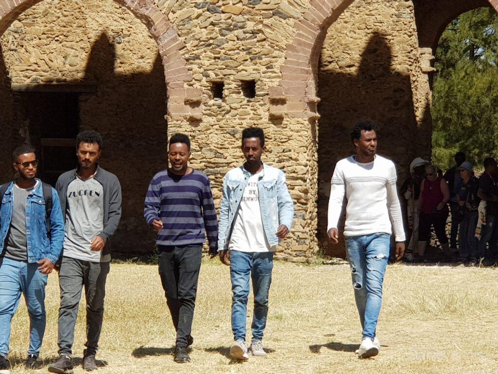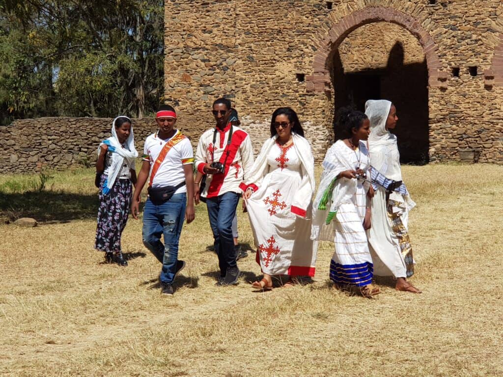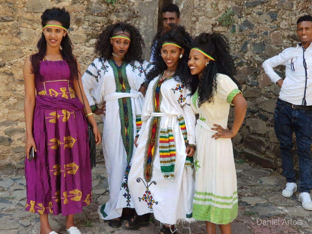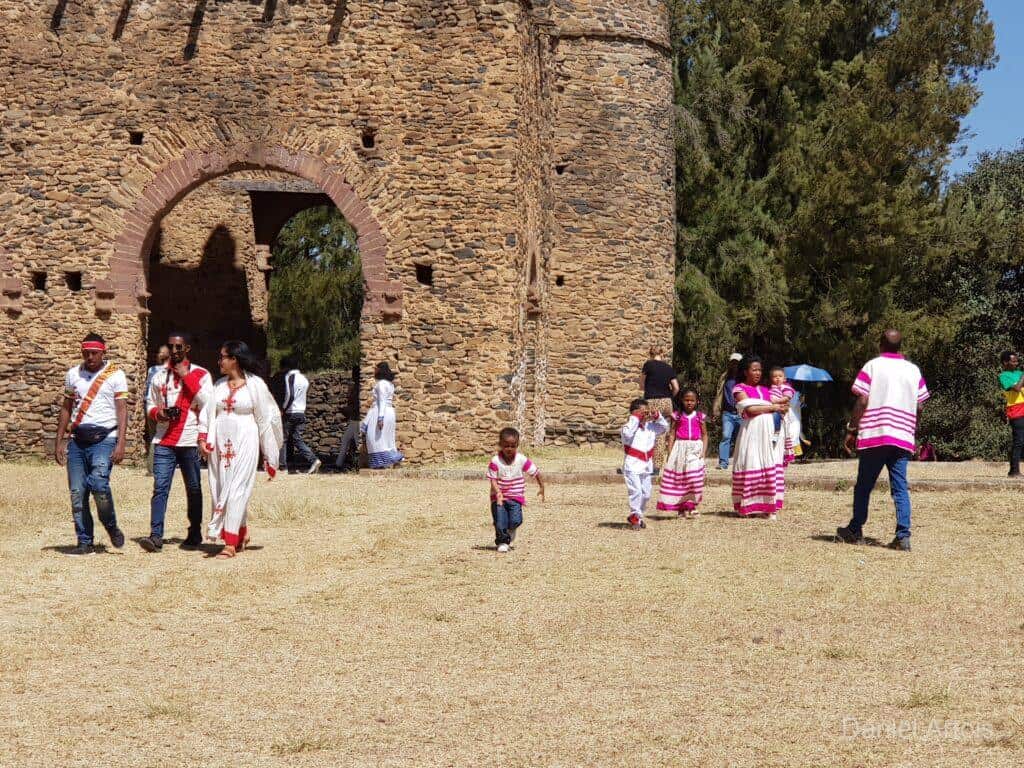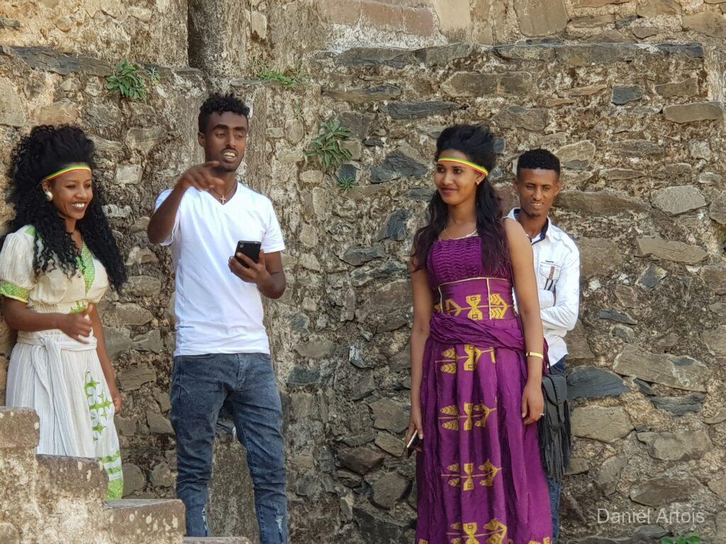 Om elf uur begonnen we aan een rondleiding door de stad. We reden eerst naar de Royal Enclosure waar we een aantal koninklijke paleizen (vanaf 1635 – ca. 1780) hebben bezocht. Veel bouwstijlen met Spaanse of Portugese invloed. Na dit bezoek gingen we lunchen bij de Three Sisters een restaurant dat hoog staat aangeschreven in de Lonely Planet. Na de lunch nog een kort bezoek gebracht aan de Debre Berkan Selassie kerk uit de 17e eeuw. Ook hier weer mooie beschilderde linnen doeken aan de wanden.