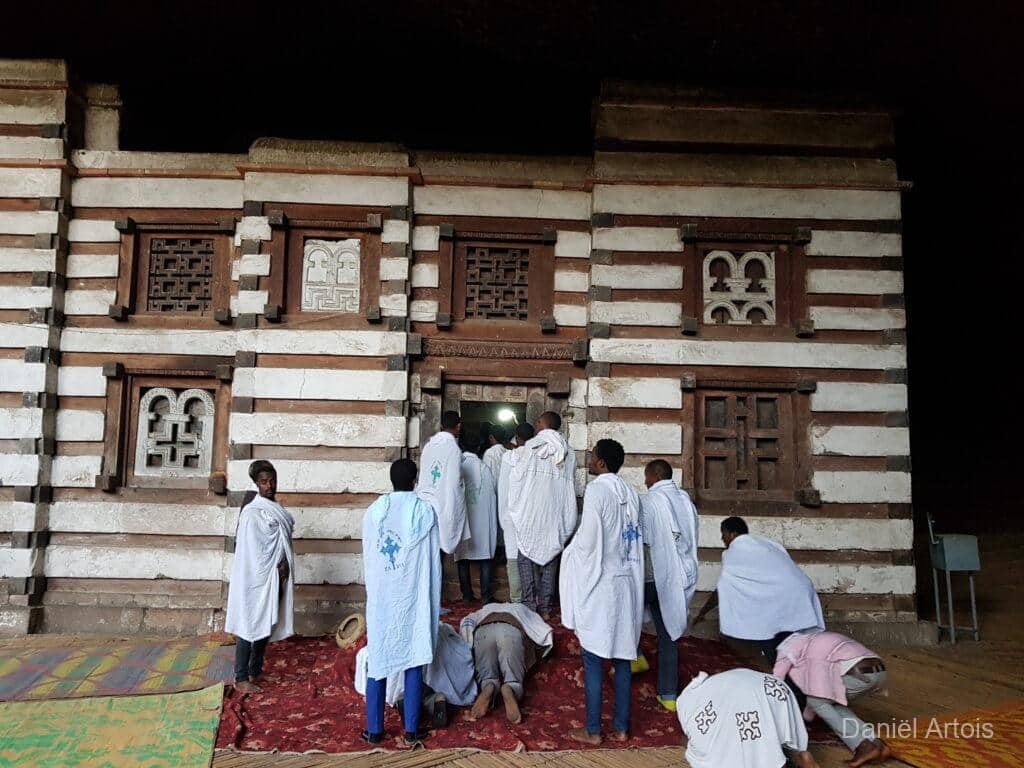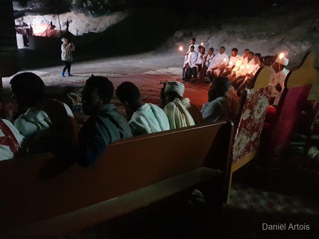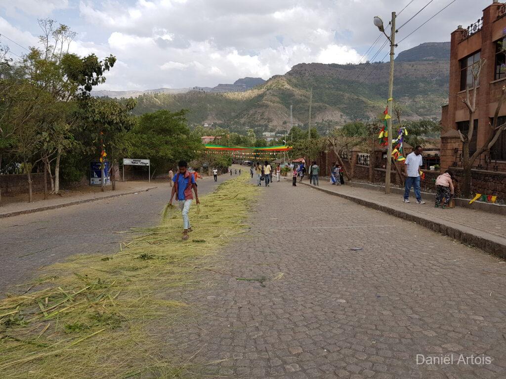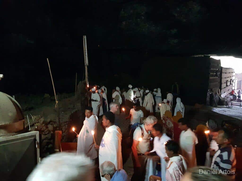 s’Middags nog wat door Lalibela gewandeld, en om 16.30 u kwam er een processie langs ons hotel. s’Avonds afscheidsdiner bij het hotel in de vorm van een barbecue, tevens hebben we onze uitstekende reisbegeleider Geert-Jan in het zonnetje gezet.