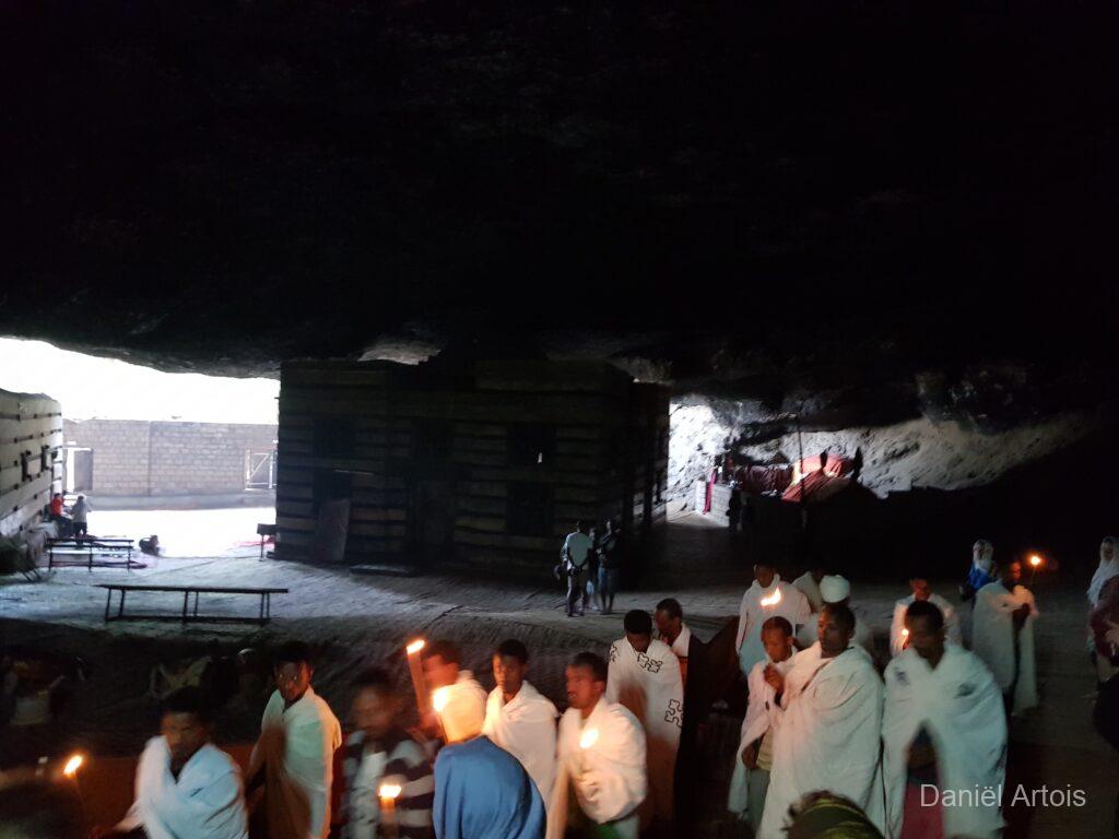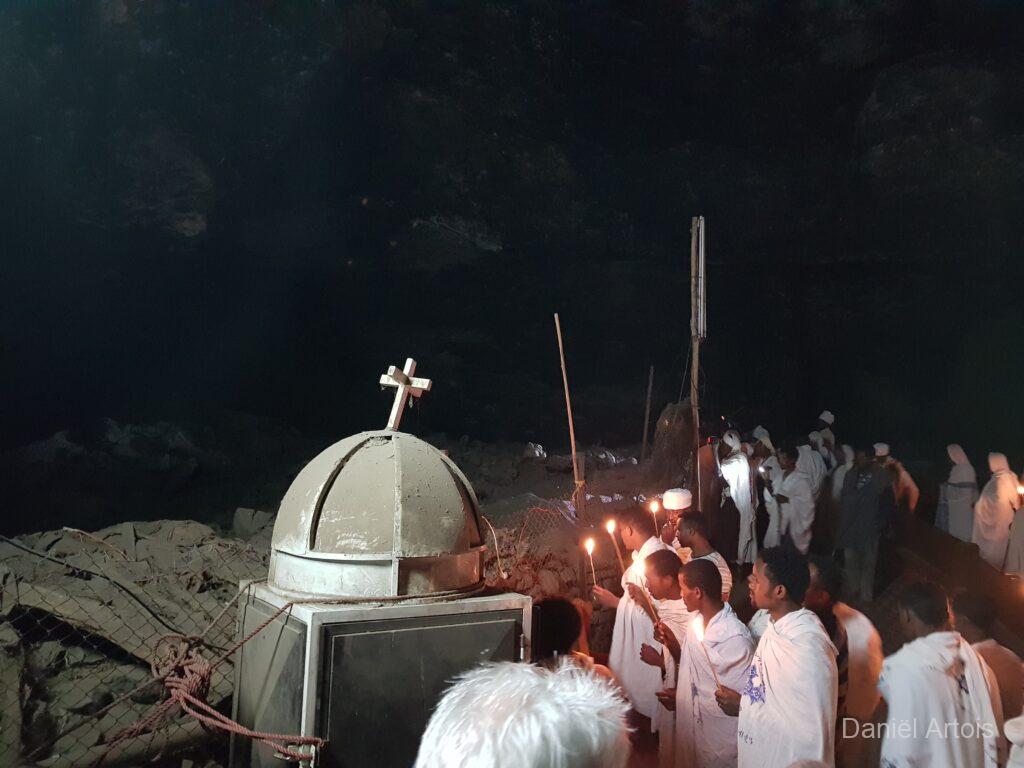 Om zeven uur ontbijt, acht uur vertrek, voor de excursie naar de Yimrihane Kiristos kloosterkerk. Deze ligt op ca anderhalf uur rijden van Lalibela door een mooi landschap. Daarna is het nog een flinke klim te voet om bij de kerk uit de 13e eeuw te komen. Mooi gelegen in een grot, en ook apart van bouwstijl. Bijzonder aan deze kerk is ook dat er een enorme stapel skeletten achter in de grot liggen. Dit zou de doden dichter bij de hemel brengen. Na dit bezoek een koffiestop in een dorpje dicht bij de kloosterkerk, en hier nog een stukje gewandeld. Daarna met de bus terug naar het hotel. Een aantal mensen stapten onderweg uit bij restaurant Ben Abeba prachtig gelegen boven op een heuvel. Wij zijn teruggegaan naar het hotel en hebben nog geluncht bij restaurant Kana.