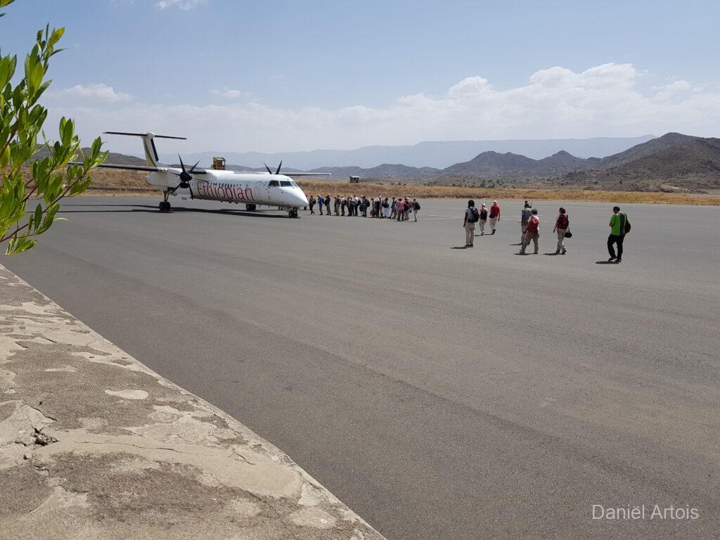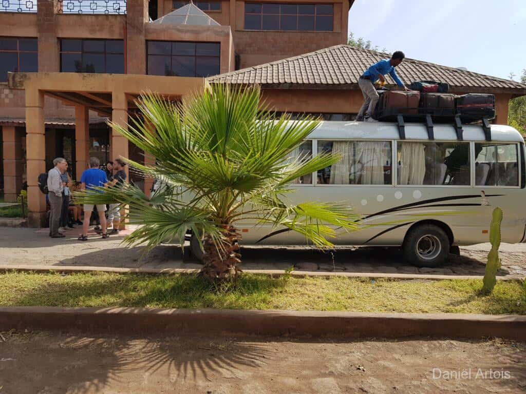Om acht uur ontbijt, half elf vertrek met de bus naar het vliegveld. Eerst nog wat foto’s genomen van het Giorgis festival in de buurt van het hotel (dit festival was trouwens de hele nacht luid en duidelijk doorgegaan!). Om kwart over elf kwamen we aan op het vliegveld van Lalibela. Inchecken etc. ging wederom vlot alleen vertrokken we dit keer tien minuten te vroeg (12.00 u) voor een vlucht van 45 min naar Addis Abeba (wederom met een Bombardier). Hier stond onze chauffeur Messi weer klaar, dus dat was een leuk weerzien. Om kwart voor drie bij ons hotel Ghion, waar we enkele kamers tot onze beschikking hadden voor bagage, omkleden etc. s’Middags nog een stukje Addis ingelopen. Naar het Red Terror Martyrs Memorial Museum, klein maar indrukwekkend, daarna wat gedronken en later gegeten bij Le Beaumont restaurant. Rond zes uur weer terug bij het hotel, omgekleed en wat gedronken. Om negen uur gingen we naar het vliegveld. Vanwege de enorme drukte verliepen de security check, de paspoortcontrole en het inchecken allemaal uiterst moeizaam.