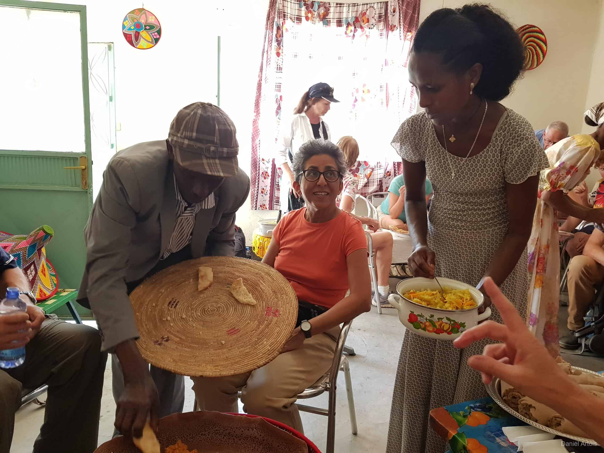 De rondleiding werd afgesloten met een Ethiopische lunch in het woonhuis van de lokale gids. Erg leuk. s’Middags ter vrije besteding. Wij zijn nog even langs de kerk van Lady Mary of Zion geweest en de nieuwe obelix.
