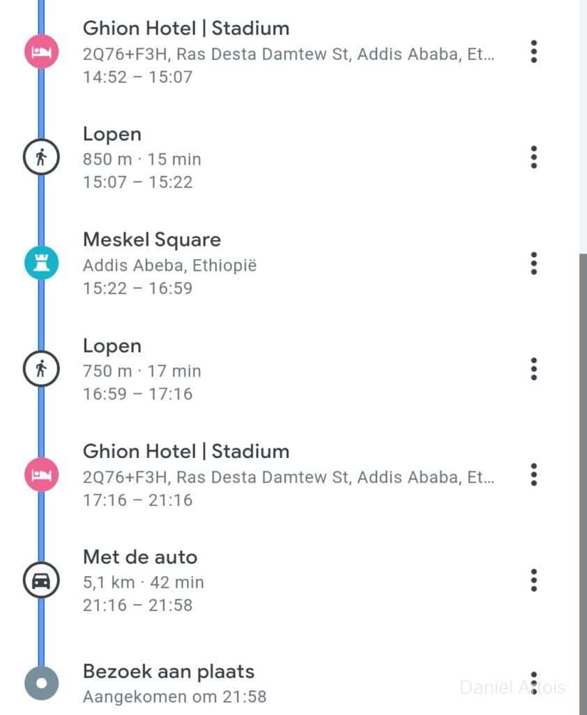 Om acht uur ontbijt, half elf vertrek met de bus naar het vliegveld. Eerst nog wat foto’s genomen van het Giorgis festival in de buurt van het hotel (dit festival was trouwens de hele nacht luid en duidelijk doorgegaan!). Om kwart over elf kwamen we aan op het vliegveld van Lalibela. Inchecken etc. ging wederom vlot alleen vertrokken we dit keer tien minuten te vroeg (12.00 u) voor een vlucht van 45 min naar Addis Abeba (wederom met een Bombardier). Hier stond onze chauffeur Messi weer klaar, dus dat was een leuk weerzien. Om kwart voor drie bij ons hotel Ghion, waar we enkele kamers tot onze beschikking hadden voor bagage, omkleden etc. s’Middags nog een stukje Addis ingelopen. Naar het Red Terror Martyrs Memorial Museum, klein maar indrukwekkend, daarna wat gedronken en later gegeten bij Le Beaumont restaurant. Rond zes uur weer terug bij het hotel, omgekleed en wat gedronken. Om negen uur gingen we naar het vliegveld. Vanwege de enorme drukte verliepen de security check, de paspoortcontrole en het inchecken allemaal uiterst moeizaam.
